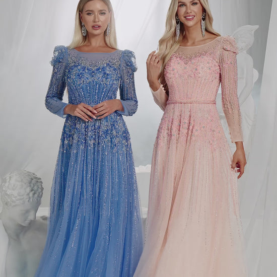 This beaded evening gown shines under the lights! The beads are full and the craftsmanship is exquisite, with top-tier texture.