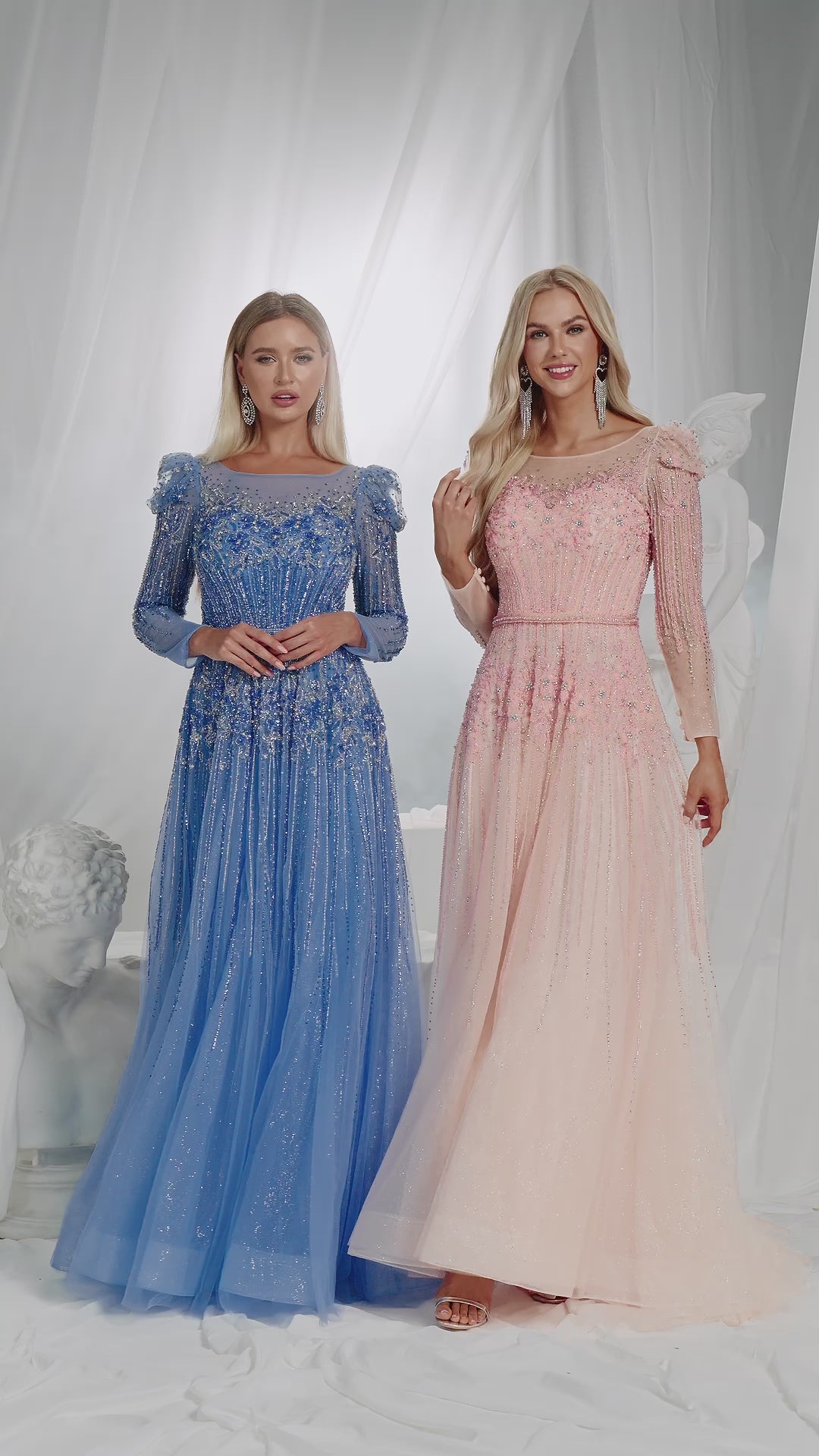 The long train evening gown is so ceremonial! When the skirt drags on the ground, you’ll feel like a princess—perfect for weddings.
