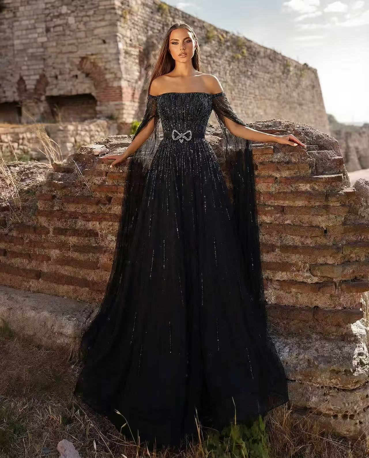 The long train evening gown is so ceremonial! When the skirt drags on the ground, you’ll feel like a princess—perfect for weddings.