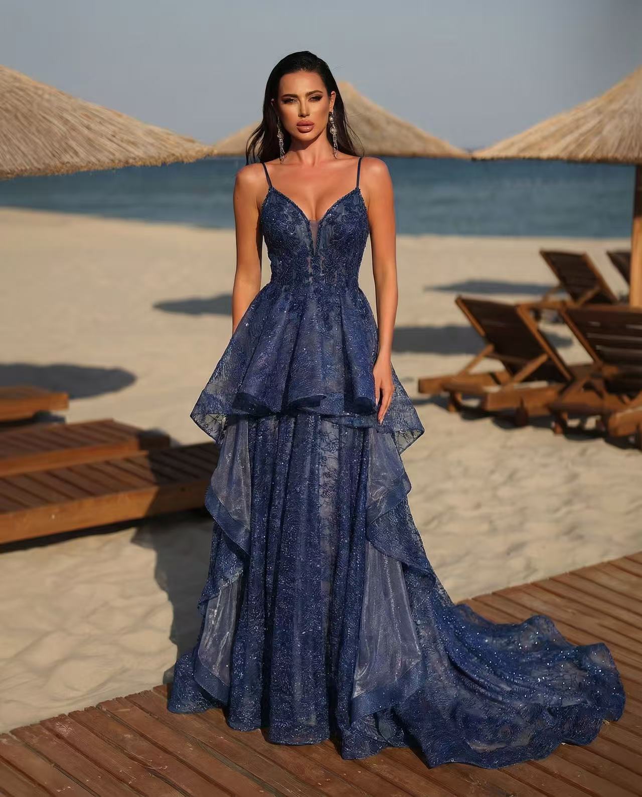 This beaded evening gown shines under the lights! The beads are full and the craftsmanship is exquisite, with top-tier texture.
