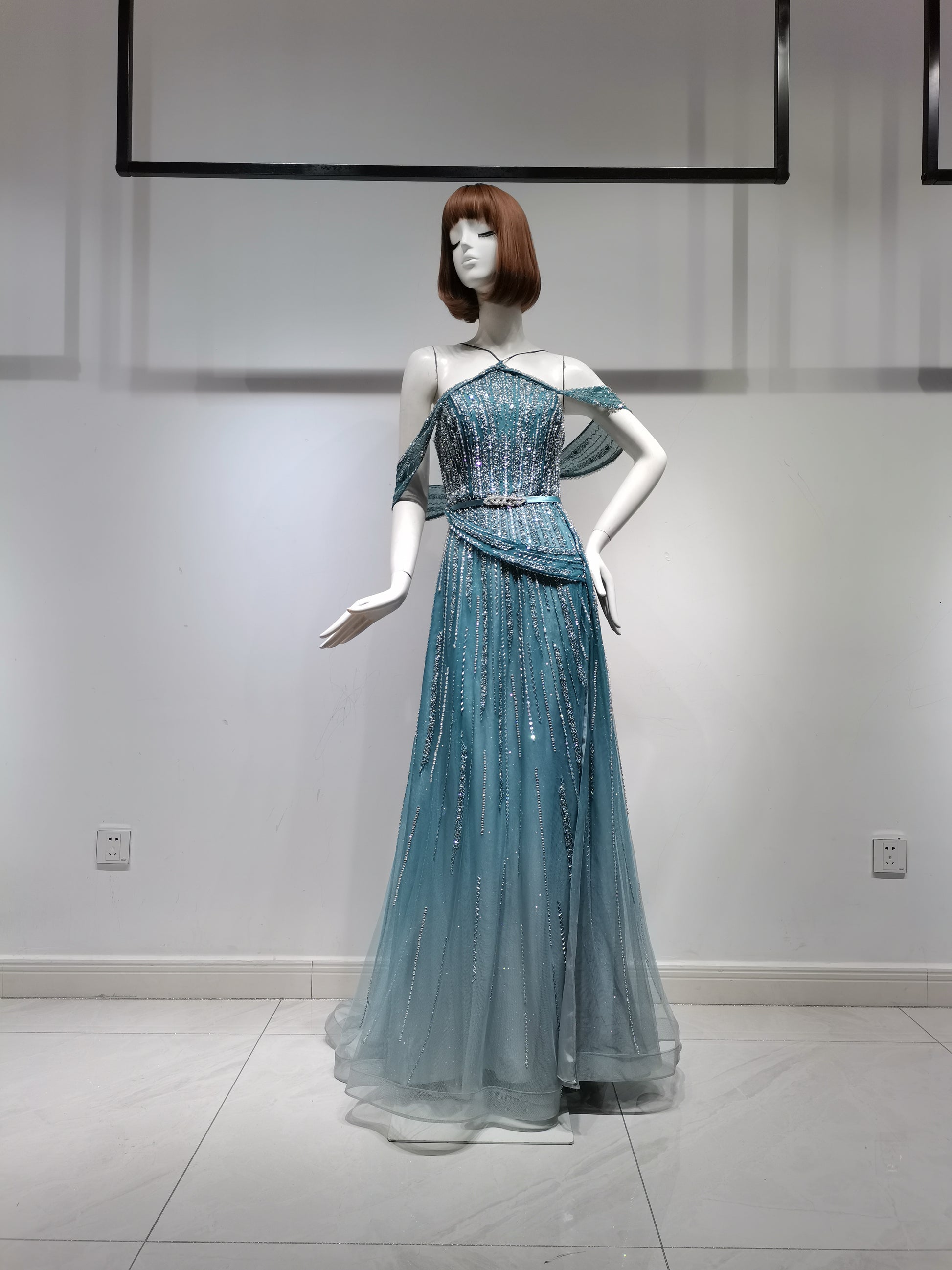 This beaded evening gown shines under the lights! The beads are full and the craftsmanship is exquisite, with top-tier texture.