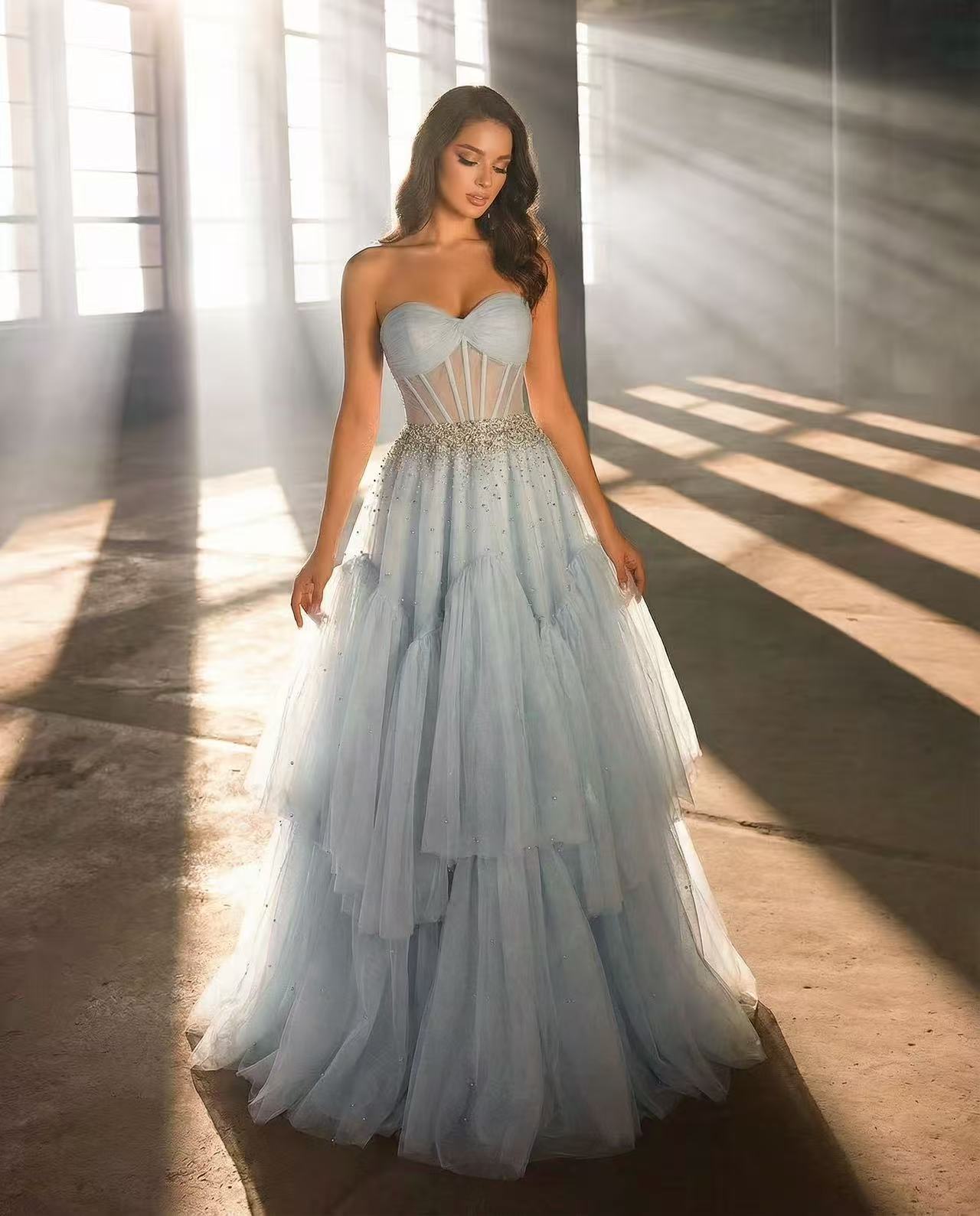 This strapless evening gown is amazing! The three-dimensional tailoring fits perfectly, the chest ruffles hide flaws—super friendly for curvy girls.