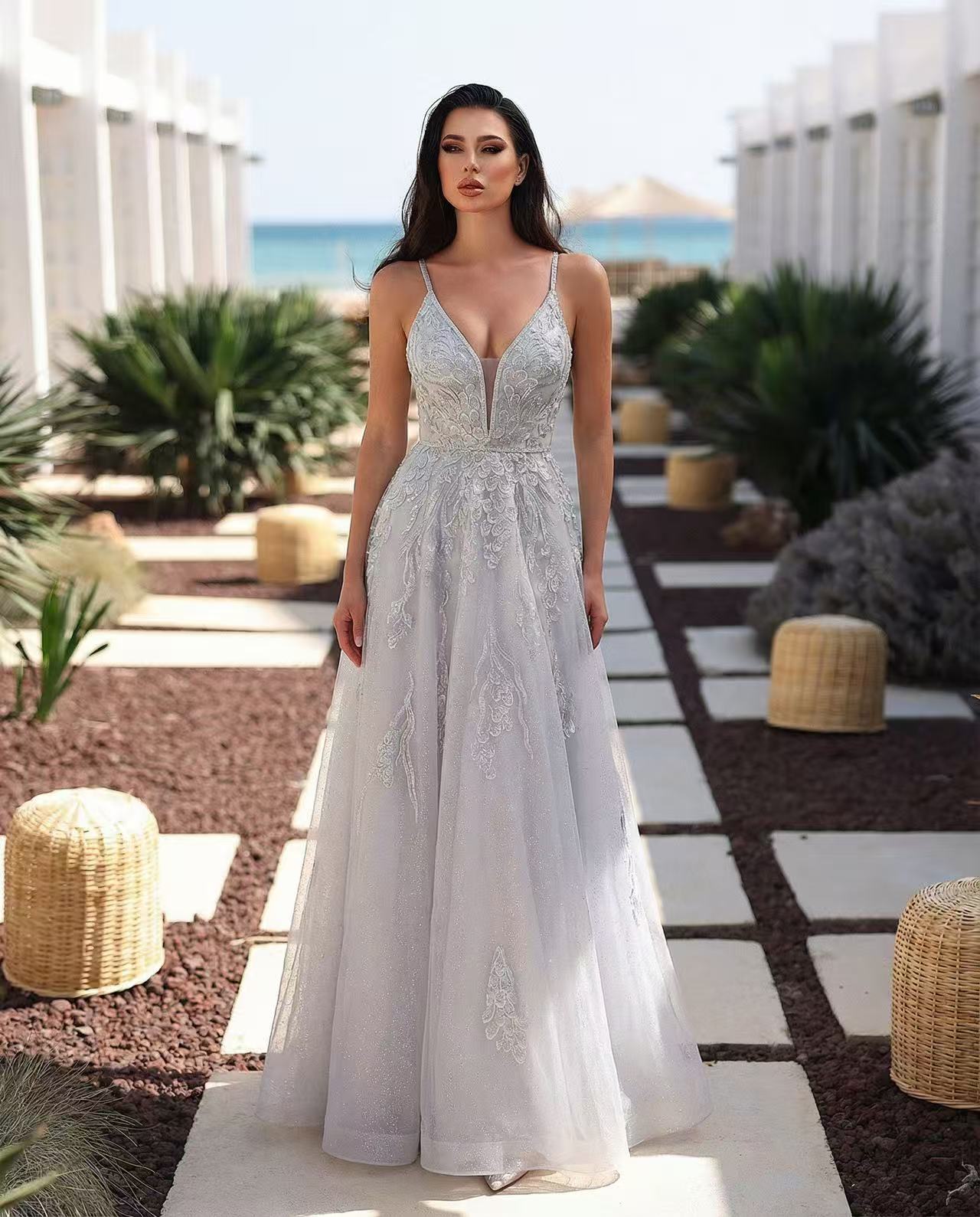 The long train evening gown is so ceremonial! When the skirt drags on the ground, you’ll feel like a princess—perfect for weddings.